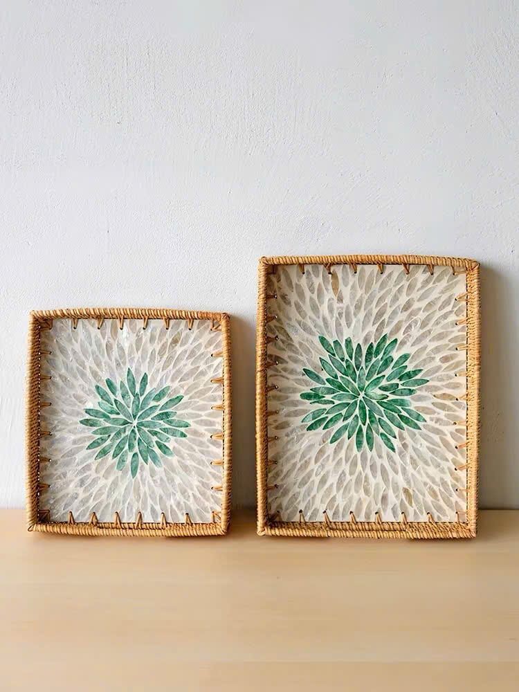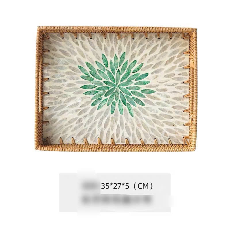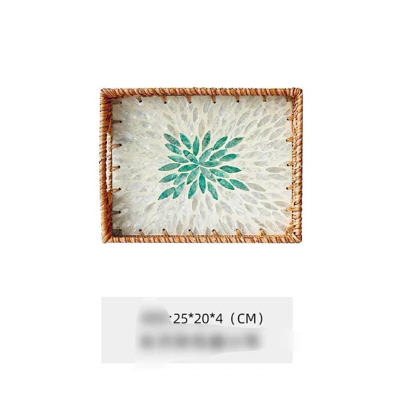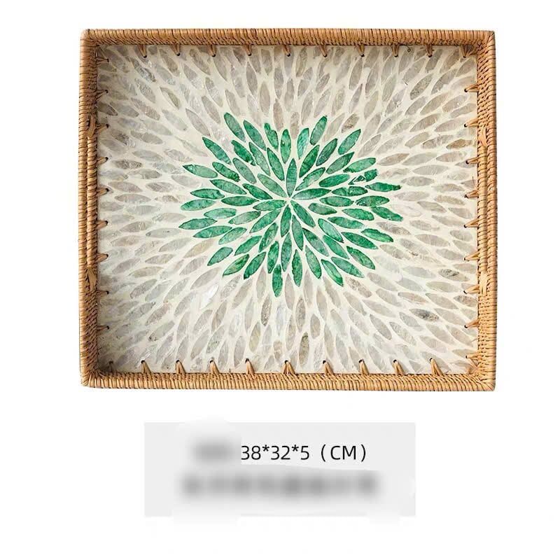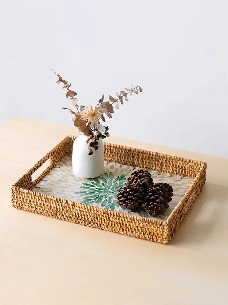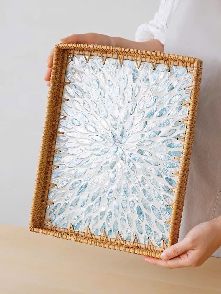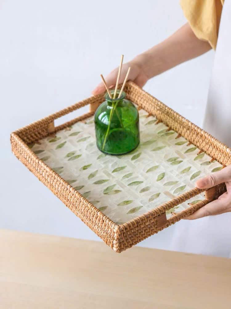 Khay Mây Tròn Khảm Trai có Tay Cầm Đựng Đồ Ăn – Khay Mây Guột Trang Trí Decor 3 kích thước